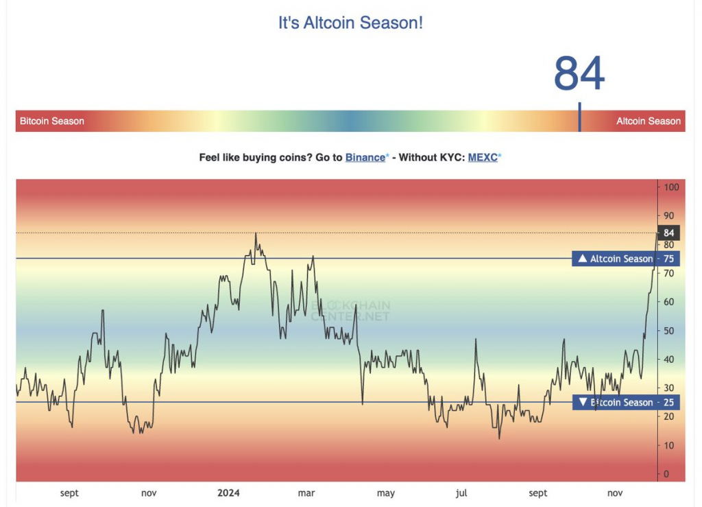 An altcoin season is characterized by alternative cryptocurrencies significantly outperforming Bitcoin in price growth. This phase occurs when investors pivot their focus from Bitcoin, seeking potentially higher returns in altcoins. The Altcoin Season Index serves as a key metric, evaluating the performance of the top altcoins against Bitcoin over a 90-day period. A score above 75 typically denotes an active altcoin season; with the index now at 84, it suggests robust altcoin performance.