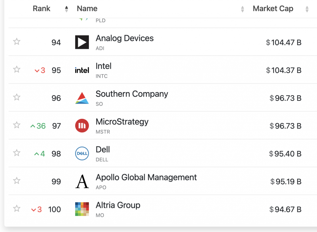 MicroStrategy has ascended to the 97th position among publicly traded companies in the U.S., fueled by a significant stock price increase and its ongoing commitment to Bitcoin investments, which has resulted in a remarkable year-to-date growth of over 500%.