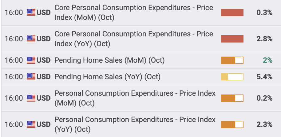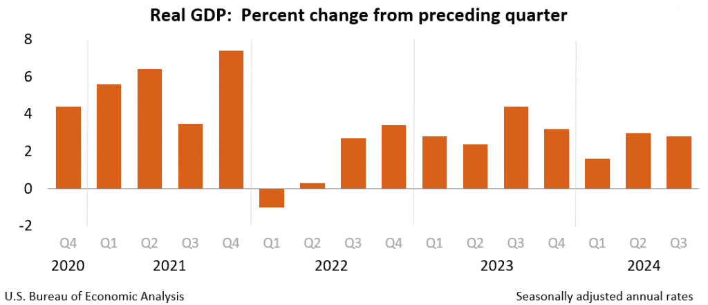 In conjunction with PCE data, the second estimate for Gross Domestic Product (GDP) growth for the third quarter has been reported at 2.8%, consistent with prior expectations. This growth rate provides insight into the overall economic performance, reflecting a stable expansion phase in economic activity.