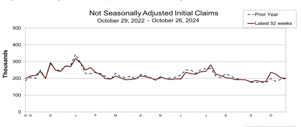 Continuing claims decreased to 1.862 million, compared to an estimate of 1.885 million. The overall trend remains downward, suggesting resilience in the labor market despite challenges, although recent data may have been influenced by hurricanes.