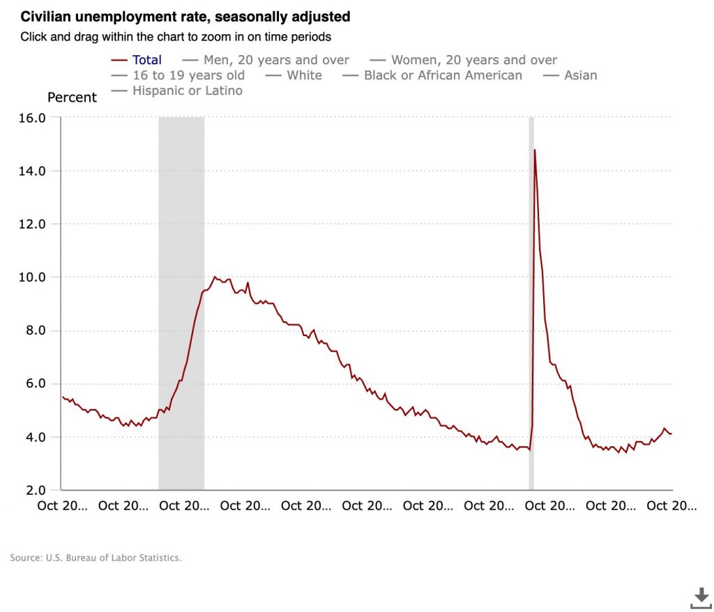 The previous month’s job gain for September was revised down from 254,000 to 223,000, and also for August, which was revised down by 81,000, indicating a net decrease of 112,000 jobs across two months. The employment situation reflects broader economic challenges, including adverse weather conditions and strikes affecting major industries.